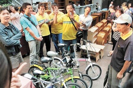 昨日首度移師市府舉行的再生家具拍賣,共準備404件家具,包括多個檜木書架、樟木小櫃子。共賣出374件,累積拍賣收入超過4.9萬元。環保局表示,25、31日分別在內湖和文山再生家具場,還各有一場開學前的家具拍賣,有興趣的民眾要把握。