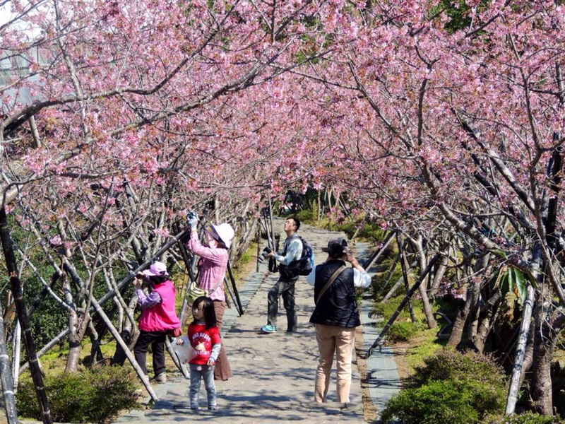 鳳凰自然教育園區栽植300株以上的櫻花,品種包含河津櫻、八重櫻、吉野櫻、山櫻花及霧社櫻等,櫻花隧道是以河津櫻沿著333石階的步道兩側栽植而成,順著步道石階而上,鮮嫩粉色的花瓣朵朵綻放,彷彿置身童話故事裡的夢幻場景,美的令人屏息。