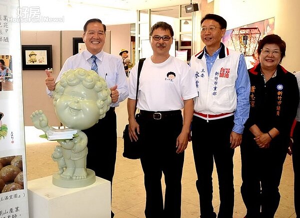 許明財市長13日主持102年新竹市社區營造輔導計畫成果展,在演藝廳展示區裡逐一參觀各社區推展成功,來到朝山社區的展區一眼見到香山阿母雕像,熟悉的上前仔細端倪,猶如許久未見的好友注目問候,然而事實上,他們最近一次才在9月間見過面,地點在朝山社區王淇郎的香山阿母文創基地,也在那次的行銷發聲後,吸引媒體的目光。