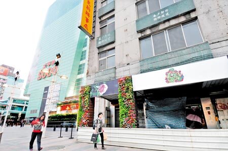 建築業者表示,央行總裁彭淮南關心正義國宅的推案進度。圖為正義大樓更新合建案與一旁的太平洋SOGO百貨形成強烈對比。 (圖/陳信翰攝)