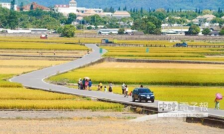 池上伯朗大道及天堂路等2條農路,1日展開2個月的管制車輛進入,昨天騎乘單車前往旅遊的遊客明顯變多,以往車輛大排長龍的金城武奉茶樹,車流也順暢許多。