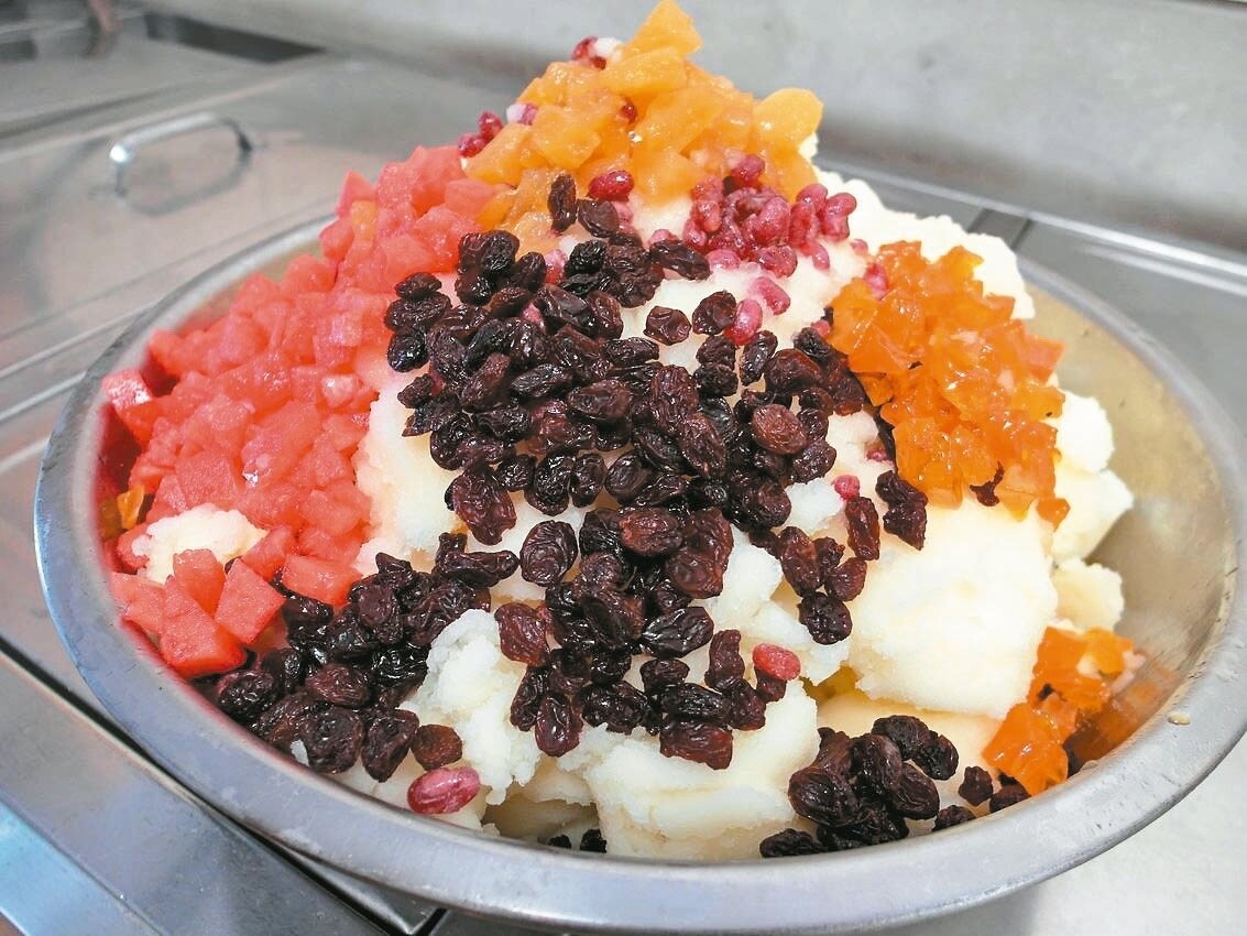 邱姓老饕說,世紀冰淡黃冰沙散發奶香,點綴著橘、紅、紫等原色配料可說色香味俱全,滋味難忘,才會每年4月就來報到。