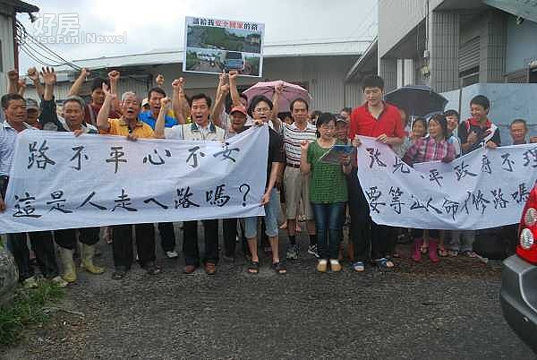 中市外埔區土城路361號前農路連續彎路駁崁崩塌,危及行車安全,因地主反對下,市府竟不敢修築,由於事關數十戶居民通行安全,9日上午數十名民眾在場抗議,議員吳敏濟接受陳情,表示日內將邀請府承辦官員現場會勘,研究解決之道。