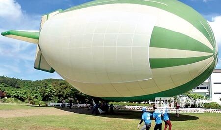 全國第1架載人熱氣飛行船,將不定期在園區周邊上空航行表演。(記者潘建志攝)