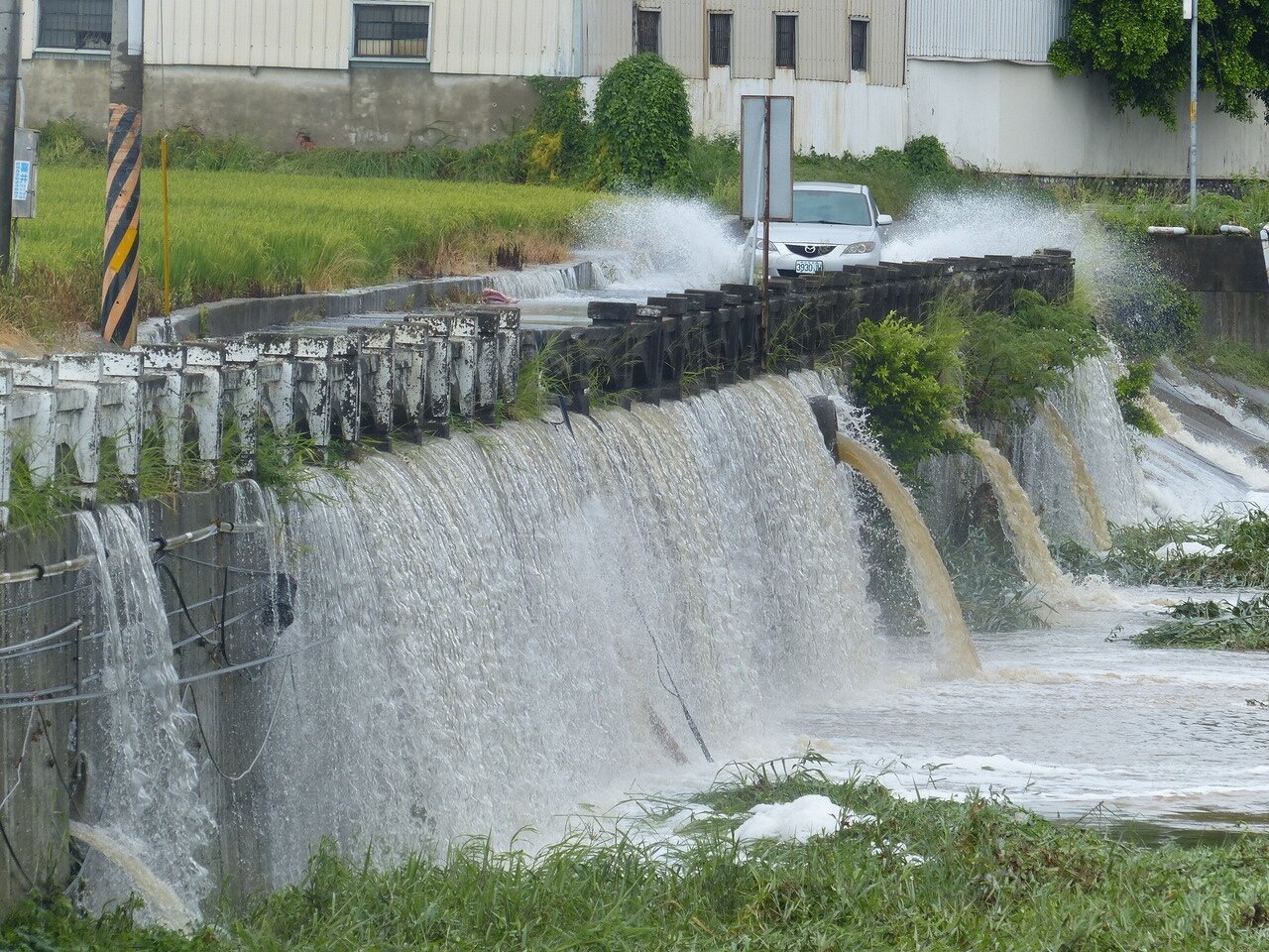 彰化縣清晨喜被豪雨轟炸,為原本乾涸的大溪流及排水,帶來滔滔洪流,芬園鄉貓羅溪河水暴漲,令人怵目心驚,而彰化市大埔截水溝從農田洩下形成的瀑布景觀,也再度出現,對於水流一直往海而去,沒辦法留住,很多民眾都說十分可惜。