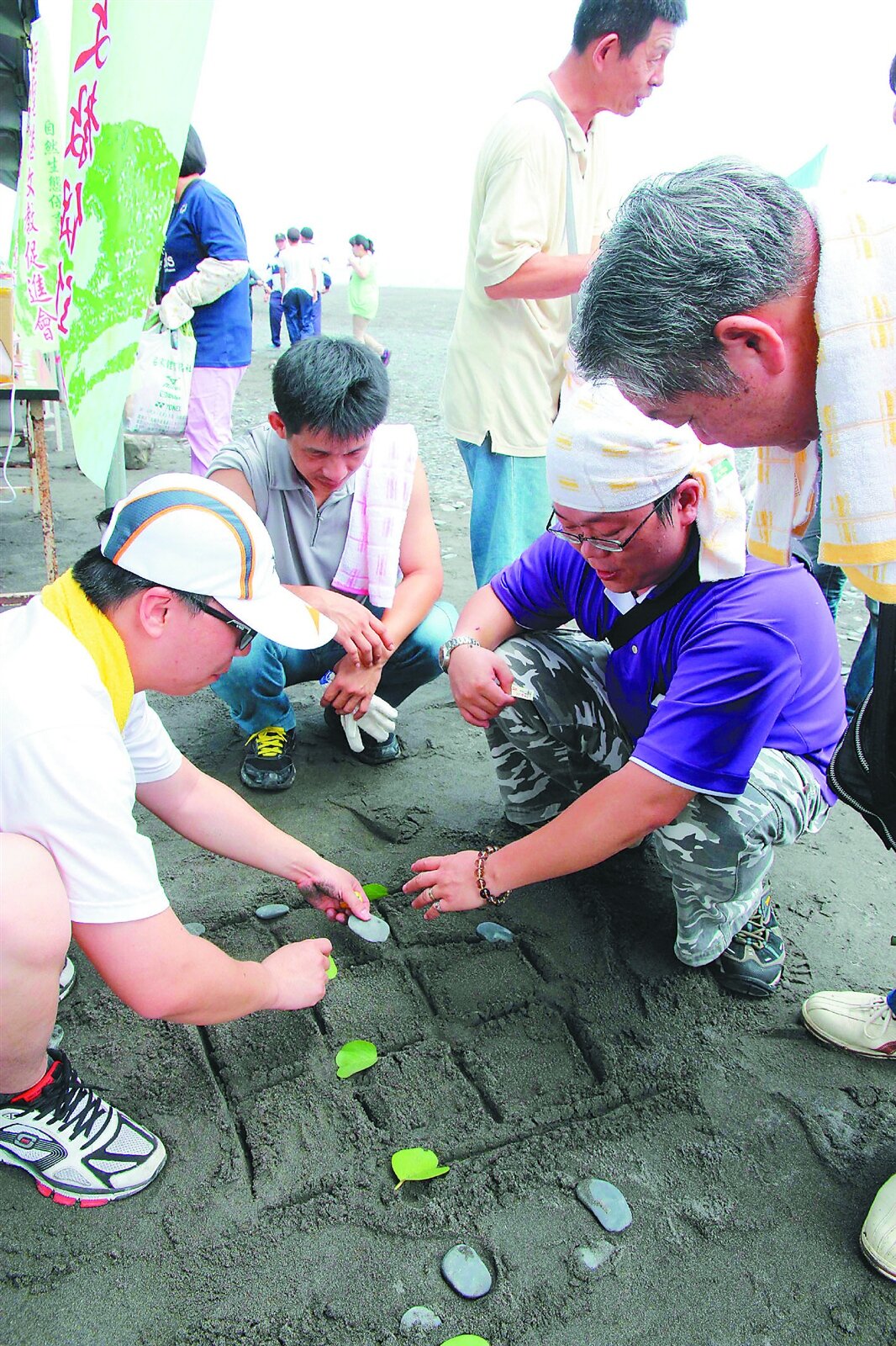 宜蘭蘇澳鎮無尾港文教促進會昨天在無尾港海邊舉辦世界海洋日活動「守護海洋宜起來」,除了淨灘撿拾超過10 袋垃圾,現場也有月桃官帽DIY、吹海螺與「海灘烏龜棋」等闖關活動。