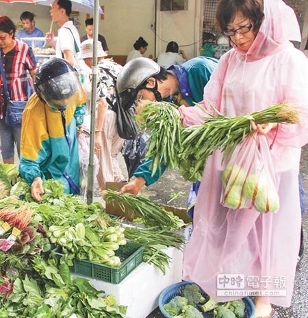 台北果菜批發市場昨天整體平均菜價每公斤27.6元,比前日28.8元還微幅下跌,但若和上周同期相比,則小漲一成。農糧署說,因颱風未必登陸,消費者預期心理解除,且前幾天菜也搶得差不多,沒人搶菜,菜價自然回跌。