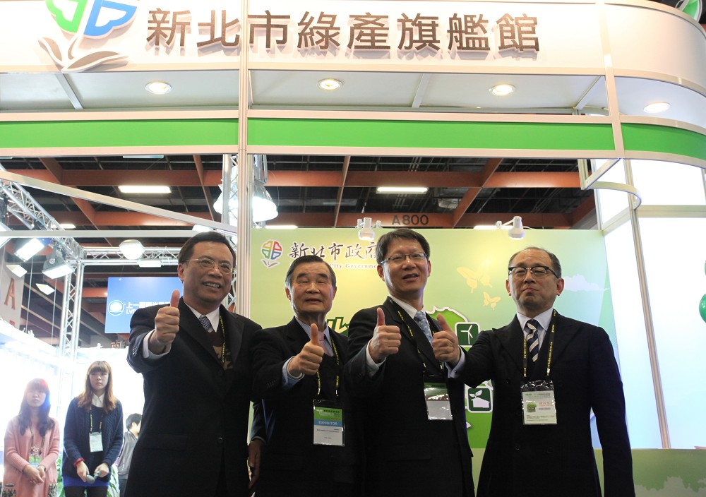 「國際綠色產品展(EPIF)」在台北世貿一館登場,新北市綠能廠商高達426家,市府整合轄內25家廠商打造「新北市綠產旗艦館」,13日分別由經發局局長葉惠青、新北市綠色能源產業聯盟陳輝俊理事長、建築中心許銘文執行長、東京育成中心師本滿副會長等共同揭牌。現場展出超省水觸控式水龍頭開關、節電率達9成的LVD無極燈、超商與辦公室節能系統等產品,讓「新北市綠色能源產業聯盟」廠商不必遠渡重洋,就能與國際買家進行媒合。