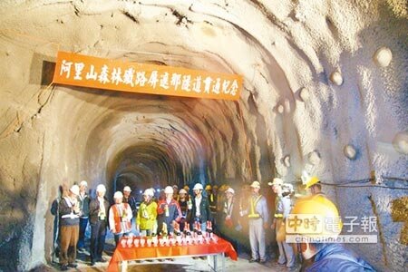 阿里山森林鐵道屏遮那隧道貫通,阿里山森鐵明年可望全線通車。(記者王瑄琪攝)