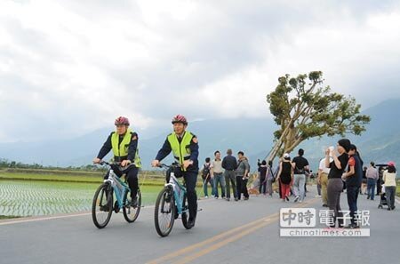 因應交通管制,錦安派出所也從春節開始增加3台騎警隊單車,派出所雖然僅有4名警力,但仍會定時騎單車巡邏,尤其遊客眾多的伯朗大道、金城武樹等地點,有民眾需要幫忙,警察將會立即騎著單車出現。