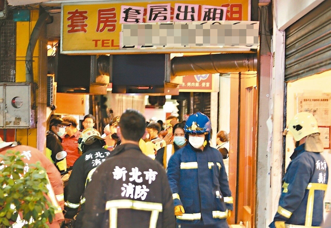 新北市消防局派遣十分隊、一大隊,各式消防車輛廿九輛,消防人員一○三人,約在晚間九時許控制火勢。消防人員在四樓發現兩具焦屍外,另有七人送醫到院前已無生命跡象,分別為五名男性、兩名女性,年紀多在四十歲至六十歲左右,焦屍身分不明。