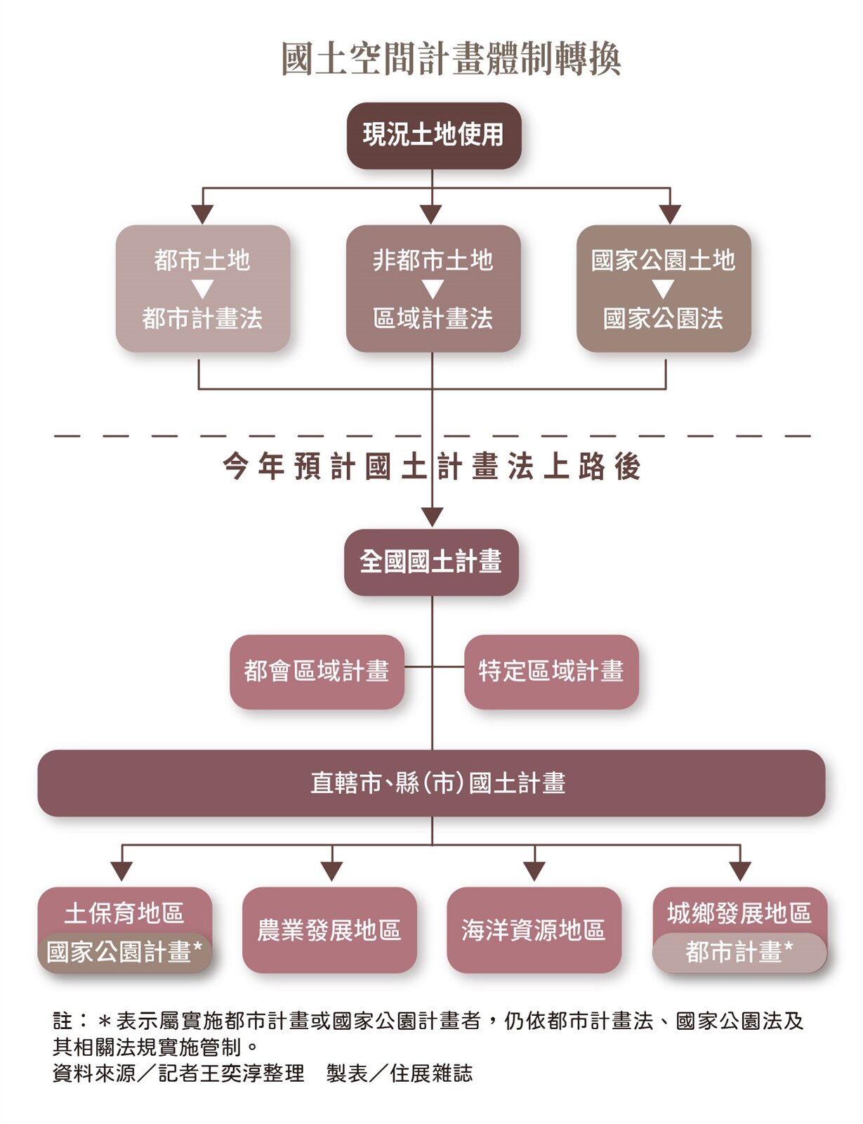 整合原先相互獨立的都市計畫法、區域計畫法及國家公園法,國土計畫法管制範圍包含都市、非都市土地及國家公園,但經《住展》觀察,非都市土地中的農地影響最大,因為現行農地上有許多違章工廠,在未來國土法上路後將面臨拆遷、罰款等後果;加上完成變更後的土地地價有望翻上數倍,於是陸續申請將農地變更為建地,加快農地流失。
