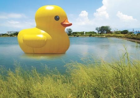 黃色小鴨今年5月走訪香港維多利亞港,隨即在亞洲刮起一陣旋風,為迎接黃色小鴨於10月26日至11月10日蒞臨新屋鄉後埤塘,縣文化局利用新屋鄉的農村文化、埤塘景觀,結合國際知名的霍夫曼「鴨出沒」、草間彌生「池塘狂想曲」、崔正化「蓮花系列」等作品,規畫舉辦一系列「地景藝術節」。縣文化局表示,為確保黃色小鴨的「體態」,策展人已著手邀請造型氣球公司重新訂製一隻全新小鴨,大小與光榮碼頭相仿。