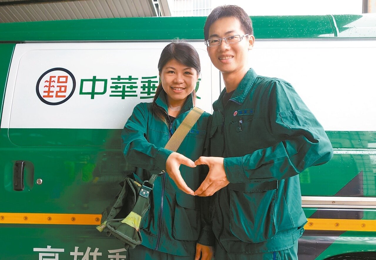 妻子潘宥伶3年前也「夫唱婦隨」,從鳳山郵局請調到六龜郵局,夫妻檔被六龜居民暱稱為「神鵰俠侶」。