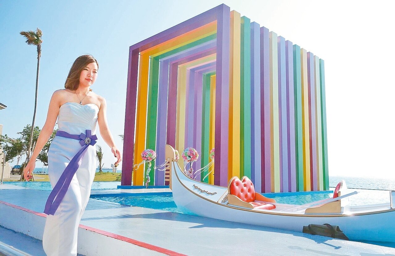文/劉星君高市府觀光局整合旗津觀光資源,延續旗津海岸公園修復工程能量、活化公共空間機能,場域委外租賃,由皇冠婚紗公司承租,斥資1千萬改造成異國風情街景婚紗片場,婚紗美境「彩虹教堂」為旗津海岸公園注入觀光地景新元素。