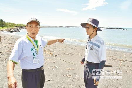 徐志雄昨天與東隆宮副董事長伍水源、第七河川局公務課長陳建安,到迎王「請水」儀式地點勘查,不料每科固定請水、送王場地布滿大雨沖下的布袋蓮,沙岸也受浪濤侵蝕嚴重,大家研討如何趕在迎王前改善。