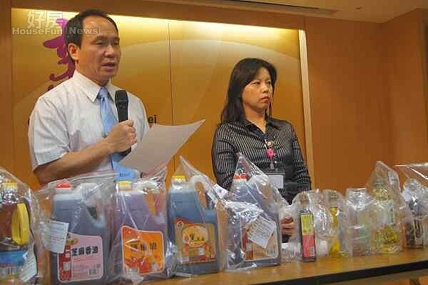 衛生局副局長林金富、科長林冠蓁出席稽查富味鄉公司說明記者會。(記者黃村杉攝)