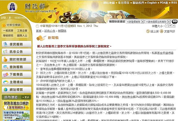 財政部10/31發布證所稅課徵相關規定(圖/翻攝自財政部官網)