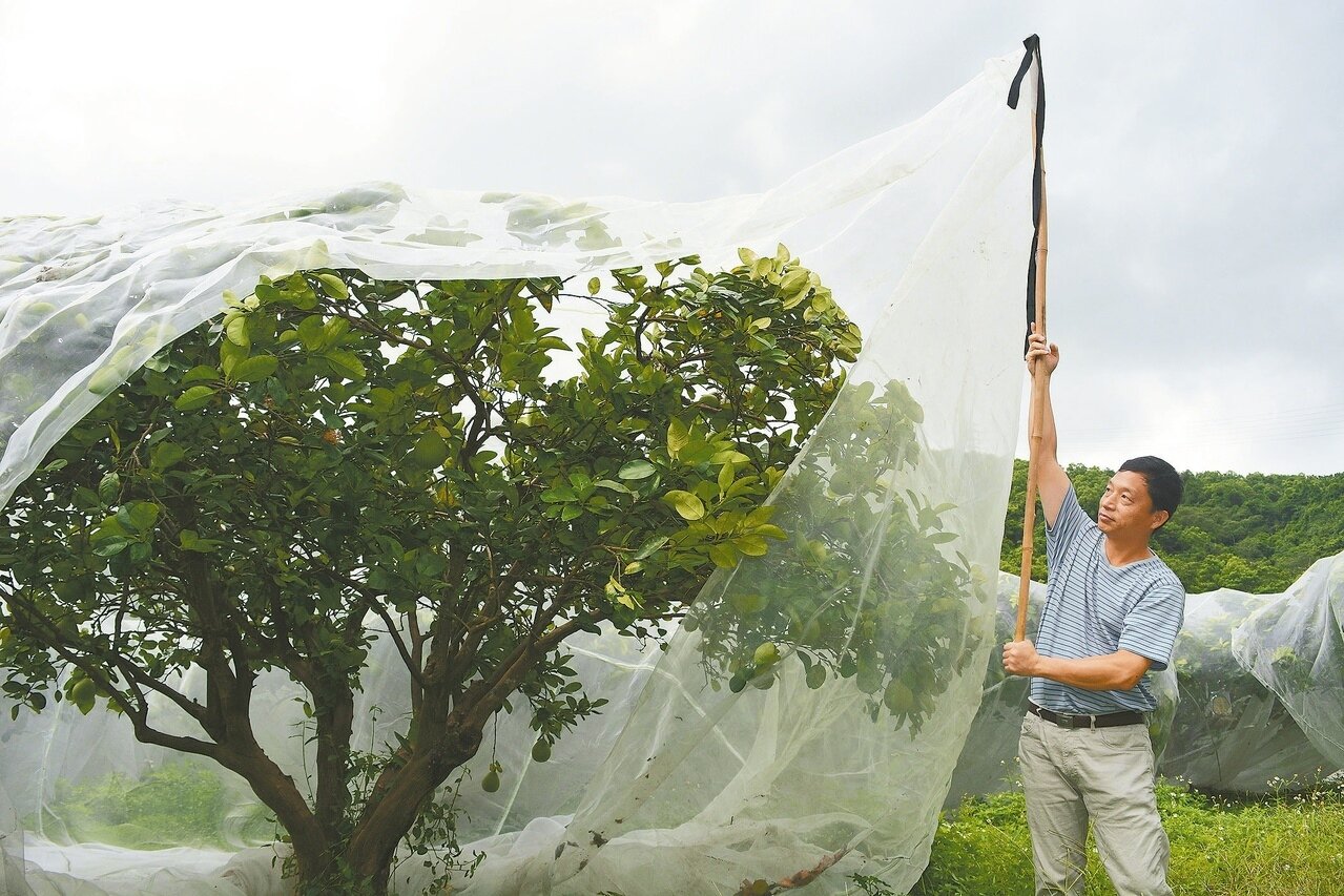 昌鴻颱風直撲北台灣,三星上將梨農擔心落果嚴重,忙著提前採收;冬山鄉文旦柚正值生長期,柚農為提防落果,套上大型紗網,希望減少損失。