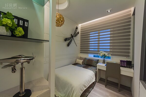 兩間房間空間都不小,主臥室為長方形空間,並有低檯度窗,並設計平台增加收納擺設,還可以做簡易書桌使用。另一間臥房則則可放置一張單人床,另一旁擺設書桌,整體空間使用相當充分。
