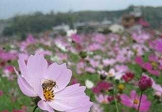 海水浴場、飛牛牧場並列苗栗縣通霄鎮有名的景點雙雄,近年來再添一新亮點,將冬天休耕期荒廢的農田轉為種植花海使用,除了避免雜草叢生、景觀不佳外,還能為冷冽的冬天增添桃粉新意,苗栗縣政府今年與通霄鎮公所規劃舉辦通霄秋收季活動,除沿線有大波斯組合而成的2.2公頃的花海外,秋收季還準備3座美麗的花朵造型造景,準備搶攻民眾的目光焦點。