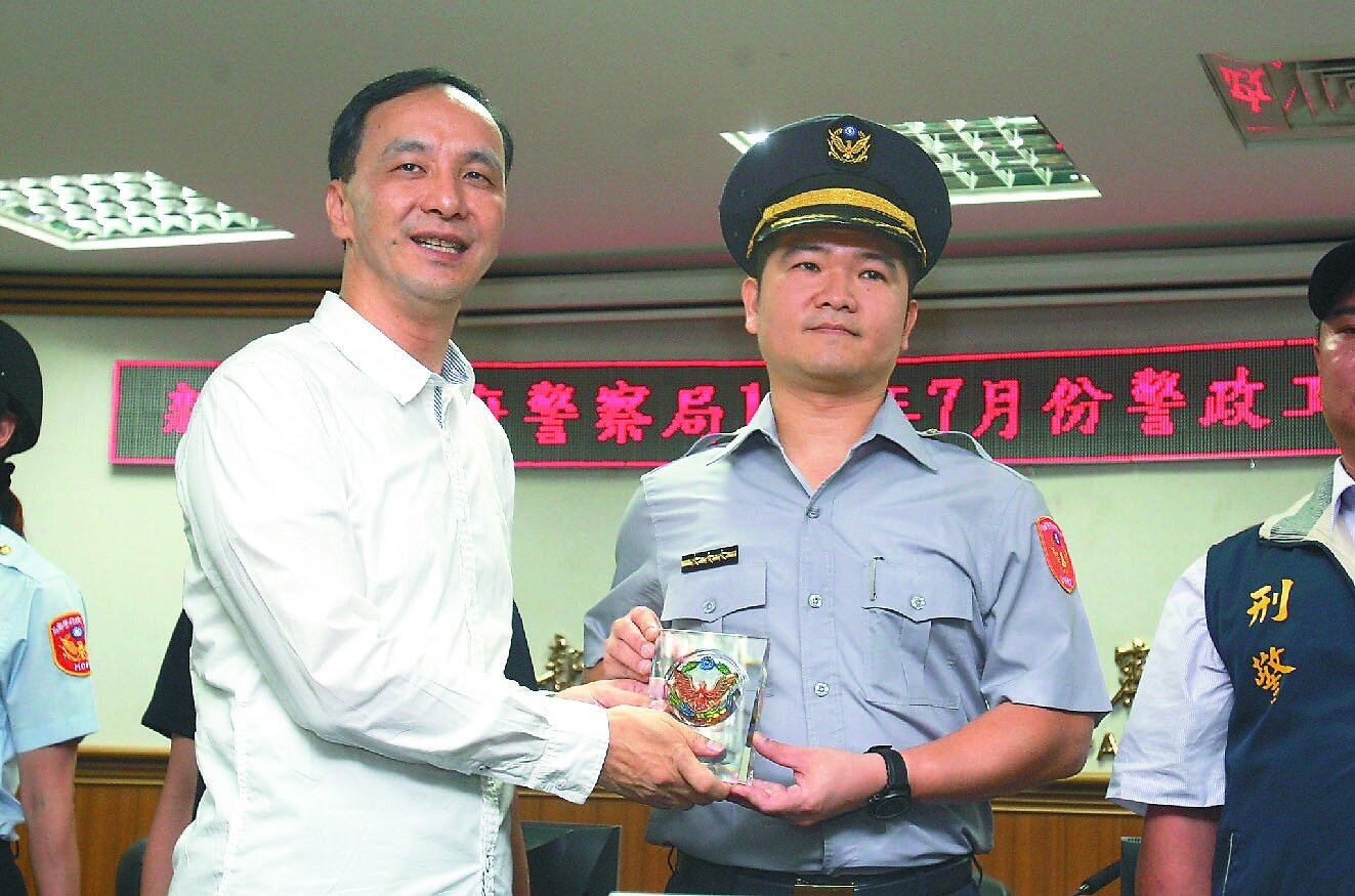新北市治安評比五都居冠,市長朱立倫上午頒獎有功人員。(記者陳珮琦攝影)