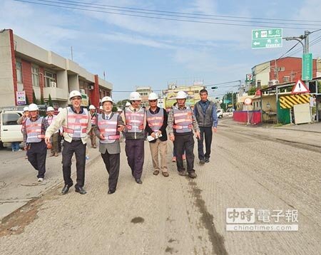 彰化縣長魏明谷視察彰員路時,指出彰員路和山腳路「同路不同名」,提出整編路段、重整門牌的主張。(記者吳敏菁/攝影)