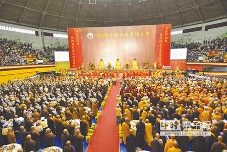 連續25年在彰化縣立體育館舉辦的中部全國供佛齋僧大會,23日盛大登場,包括彰化縣長魏明谷等中部地區政治人物齊聚,參與的法師及信徒更超過1萬7000人,全體在莊嚴的佛號聲中,祈求國泰民安、風調雨順。
