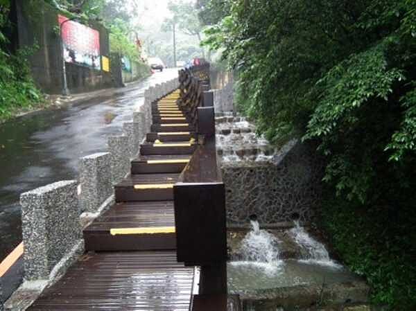 大地工程處表示,泰和里土石流潛勢溪流整治,分兩年兩期完成整治工程,原本危險的土石流潛勢溪流,如今結合鄰近糶米古道整建完成,已變成居民登山健行及親水休憩空間,為結合生態、人文、休憩,動線規劃連結泰和里,提供居民親水空間,新建人行木棧道,使登山民眾不必與車爭道,上到古道高處即可眺望台北101大樓及商圈。