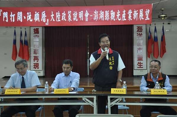 會議由行政院南服中心執行長龔瑞維主持,行政院大陸委員會副主委劉德勳率該會相關主管與會,澎湖縣長王乾發在座談會中表示,他能理解政府在國家安全的顧慮,但籲請中央給予離島澎湖更多政策上的支持與相關法令鬆綁因地制宜,盼落實陸客自由行,為澎湖冬季旅遊尋求發展新契機。