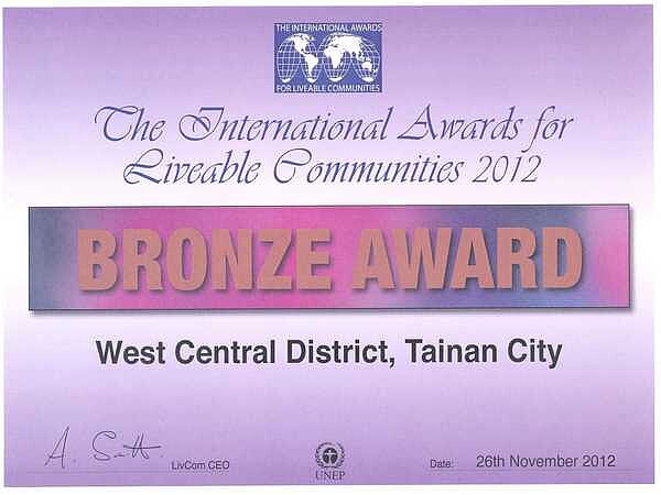 2012國際宜居社區大獎揭曉,台南市「中西區」、「新營區」及「月津港風華再現」表現優異,均獲得銅牌獎之肯定,為台南市打開國際舞台的知名度。