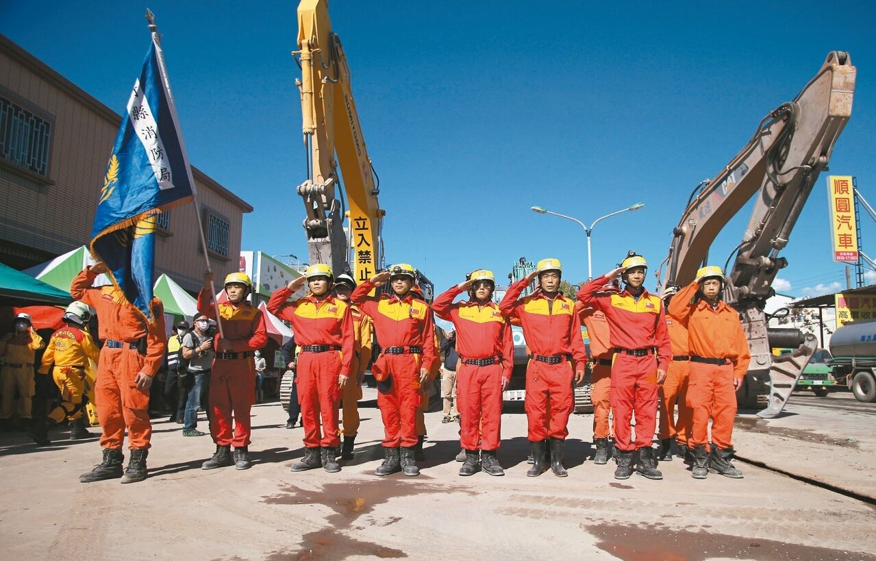 「弟兄們辛苦了,謝謝你們!」維冠大樓救援結束,來自各縣市的搜救菁英昨撤離前列隊為罹難者默哀,不少家屬流著淚上前擁抱他們,場面令人動容。