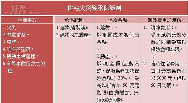 住宅火災險承保範圍一覽表。(圖/好房資料中心)