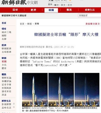 韓仁川市計劃在自由經濟區內興建一座摩天大樓,做為地標建築,特別的是,這棟大樓會「隱形」。