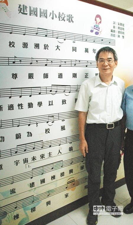從屏東市大同國小獨立分出的建國國小,一甲子光陰沒有自己校歌,經校長朱勝斌籌畫兩年時間,自己填詞找來竹田鄉長傅民雄譜曲,完成屬於學校的校歌,16日首次在校園傳唱,讓期盼已久,專屬這片園地悠揚樂聲終於進駐校園。