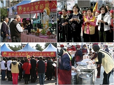 農曆臘月初八是釋迦牟尼佛成道紀念日,又稱法寶節。羅東鎮公所與佛光會羅東第一分會提前一天在中山公園廣場舉辦「慶祝法寶節,臘八粥結緣」活動,吸引民眾到場禮佛,吃碗熱呼呼的臘八粥,法喜充滿。