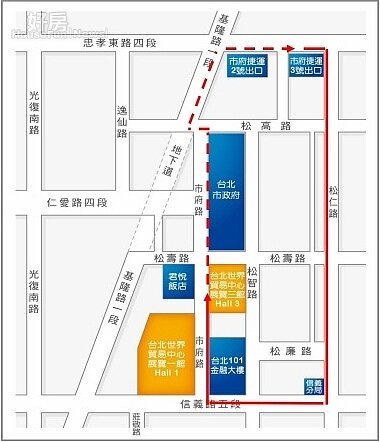 預估今年展覽將達到90萬觀展人次,平常日每天約吸引8萬人次,假日約13萬人次以上,預期將吸引大量人車湧入信義計畫區內,交通局表示,參觀民眾搭乘捷運信義線,可直達世貿展覽館,捷運台北101/世貿站1號及5號出口,此外,民眾搭乘捷運板南線,可在「捷運市府站3號出口」轉乘免費接駁車。
