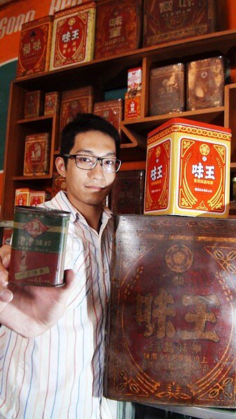 他說,蒐集的多台偉士牌玩具車,有的保持完好還能騎上街兜風;占滿牆櫃的「味王」、「味全」、「味丹」、「福味」、「津津」等各種品牌味素盒讓人驚喜不已,有鐵裝、盒裝、大大小小清一色都是「紅底、黃條紋、白色」的傳統圖樣,「當時味素盒的山寨版就很多了」,蒐集過程中讓他得到豐富樂趣與收穫。