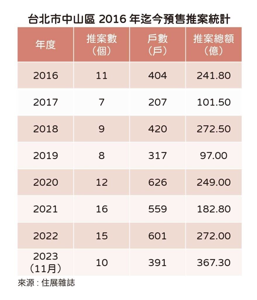 中山區近年供給戶數在全北市中屬前段班,不過,號稱都更特快車的危老整合,也還需一定時間進行,因此展望未來,中山區正進入發展成熟,也就是供給稀缺、單價持續居高的穩定階段。