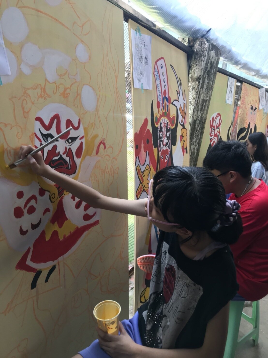 嘉義青年發揮創意,將廢棄的「醬菜」工廠變「將才(台語)」工場,輔仁中學學生繪製八家將,未來將在社區展出。記者姜宜菁/攝影