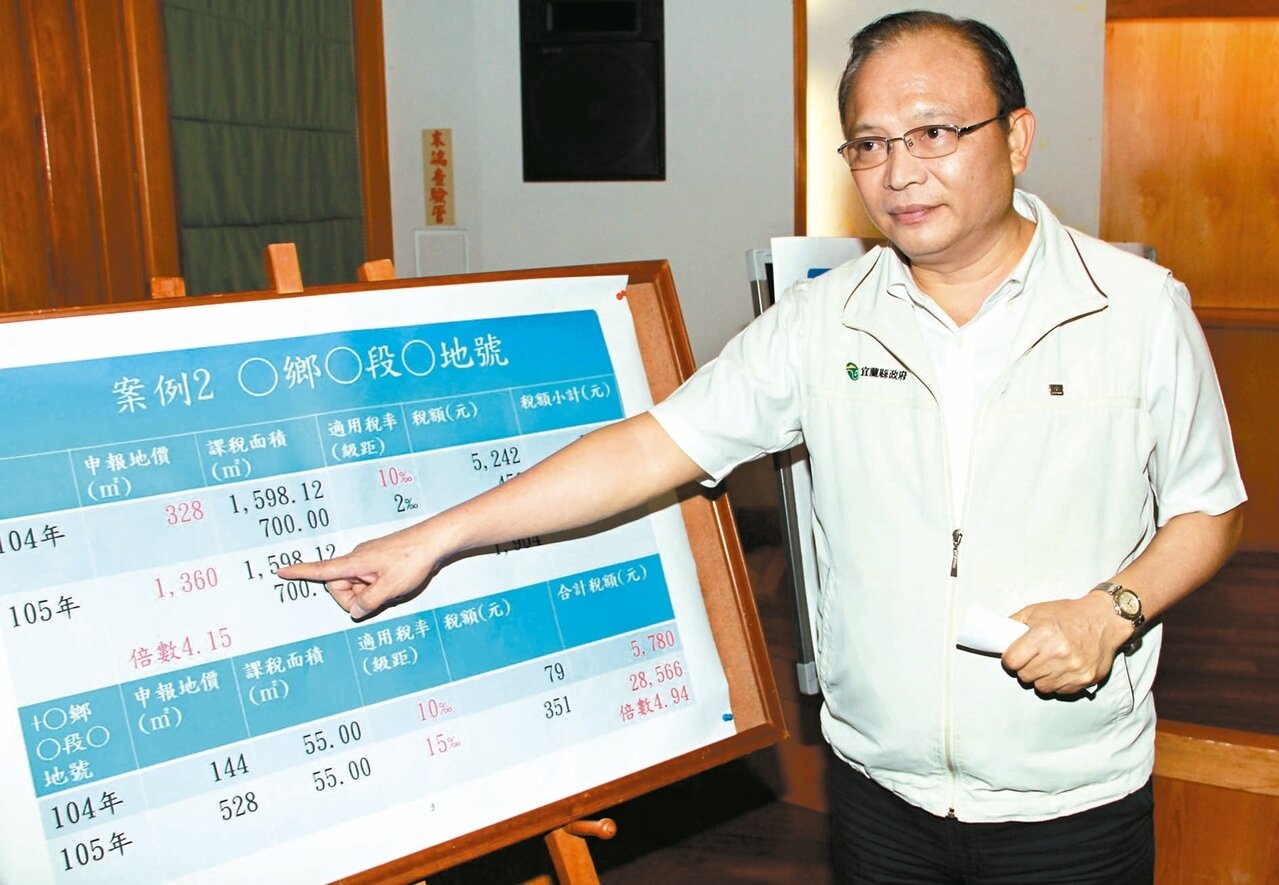 林聰賢說,此次地價稅影響最大的是民國八十九年農發條例實施以前興建的農舍也納入課稅,戶數約九百戶,顯不合理。如果複查發現是維持從來之使用,沒有改建、增建與違規使用,就不應該課稅。他強調,堅持農地農用的政策沒有退讓,若有高估或不合理的稅額就重課。「督導不周,責任我來承擔!」林聰賢昨天率地政處長余聯興、地方稅務局長呂莉莉親上火線說明,並宣布重新評議地價。