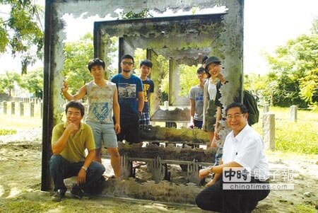 張柏豪說,同學腦力激盪後,完成這座看起來如拿鏡子照鏡子般的作品;他們磨掉紅漆展現60年前從美國運來的鋼構原色。