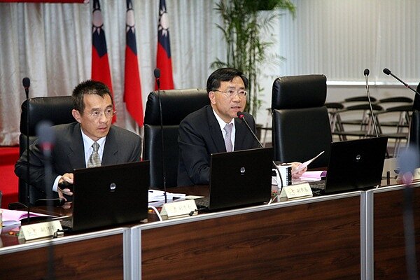 台中市長胡志強缺席治安會報,由副市長蔡炳坤(右)主持。