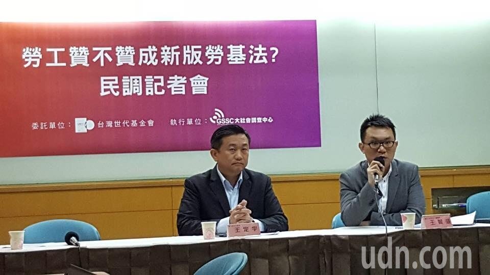 台灣世代智庫今天公布「勞工贊不贊成新版勞基法?」民意調查。(記者周佑政/攝影)