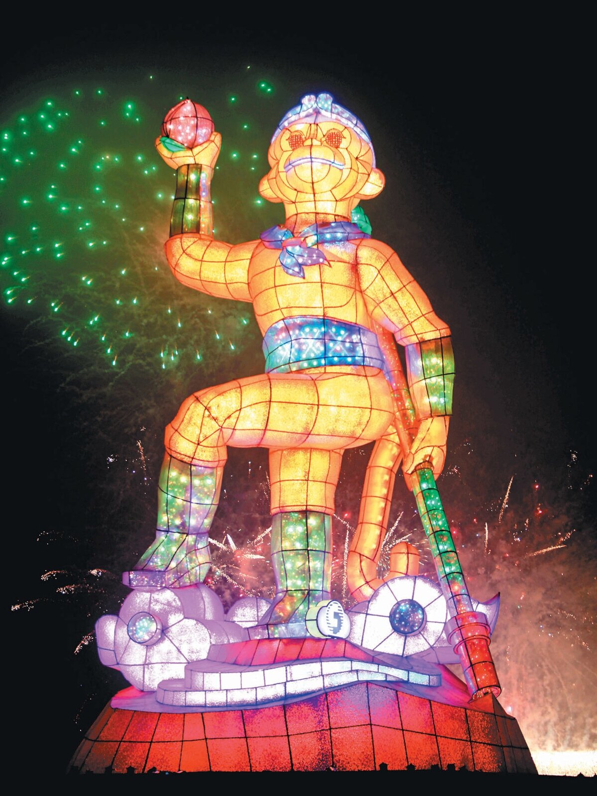 今年燈會主燈以家喻戶曉的齊天大聖孫悟空為主題,用全彩LED光源搭配4D折射模式,營造嶄新的科技風貌,高達廿六公尺也是歷年之冠。市府表示,昨晚六個燈區逾一三○萬人次進出,預估整個展期將吸引一千四百萬人次觀賞。