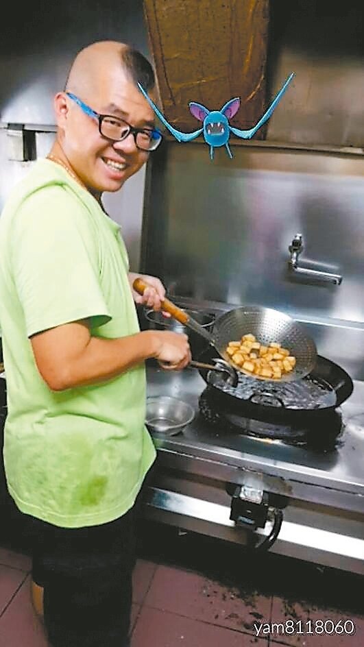 台東縣關山鎮「經濟小吃部」老闆李峰全昨在廚房忙得汗流浹背,一轉身見客人站在廚房門口,「廚房裡有隻寶可夢,請問可以進去抓嗎?」他哭笑不得,忙完後開放客人抓寶,他才知道「原來我額頭前有一隻超音蝠」。