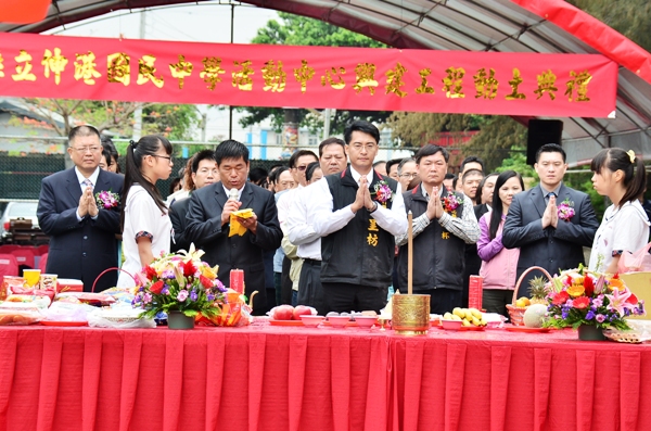 彰化縣伸港國中舉行活動中心興建工程動土典禮,彰化縣副縣長柯呈枋與在場貴賓共同祭拜祈福開工順利,氣氛簡單隆重,共同期勉工程如期如質完成,提供學子一個健康、安全、舒適優質的學習環境。