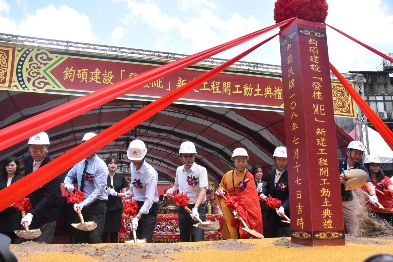 位於新北市板橋區江子翠段第二崁小段危老重建案,今天舉辦動土典禮,新北市城鄉局副局長汪禮國(左四)等人參與動土儀式。記者江婉儀/攝影