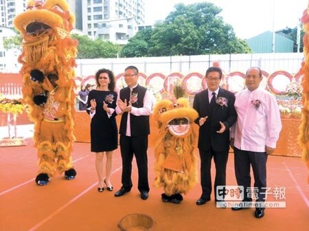 身兼台中市不動產開發公會理事長的嘉磐建設董事長魏嘉銘(左二),日前邀請台中市不動產代銷公會理事長謝坤城(右一)等人,參加「東方嘉磐」動工大典。(圖/曾麗芳)