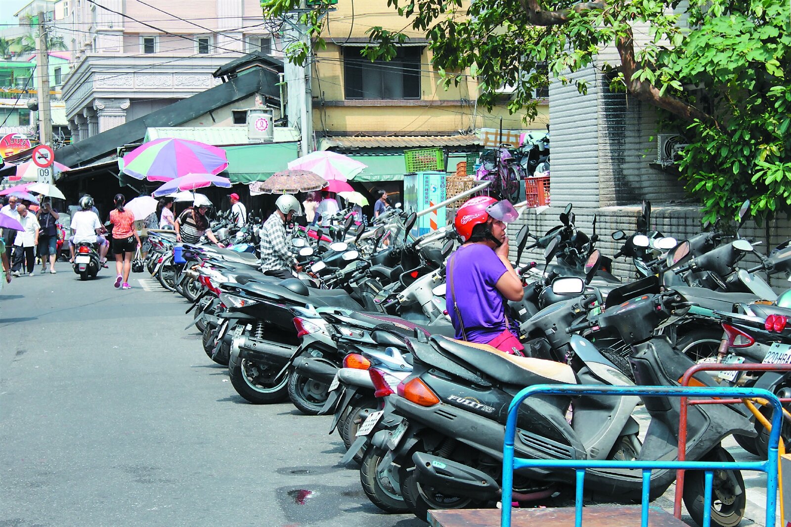 北投市場靠近北投區行政中心,周末車水馬龍,議員陳建銘要求北投區行政中心開放停車場供民眾停車。(記者林志函/攝影)